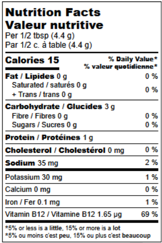 INGREDIENTS: Corn starch, inactive nutritional yeast, Onion, Miso powder (soybeans, rice, salt, Aspergillus oryzae (koji) culture), Herbs, Black pepper, Sea salt, Celery seed. Contains: Soy